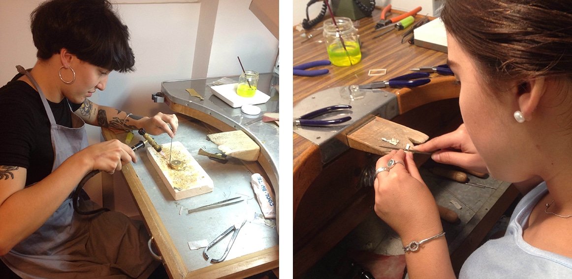 Se matricularon ocho chicas de países diferentes y fue maravilloso ver como intercambiaban sus ideas y culturas entre si. Algunas de ellas tenían algún conocimiento de joyería pero en general casi nadie se había acercado nunca a una mesa de joyero o a un soplete.
