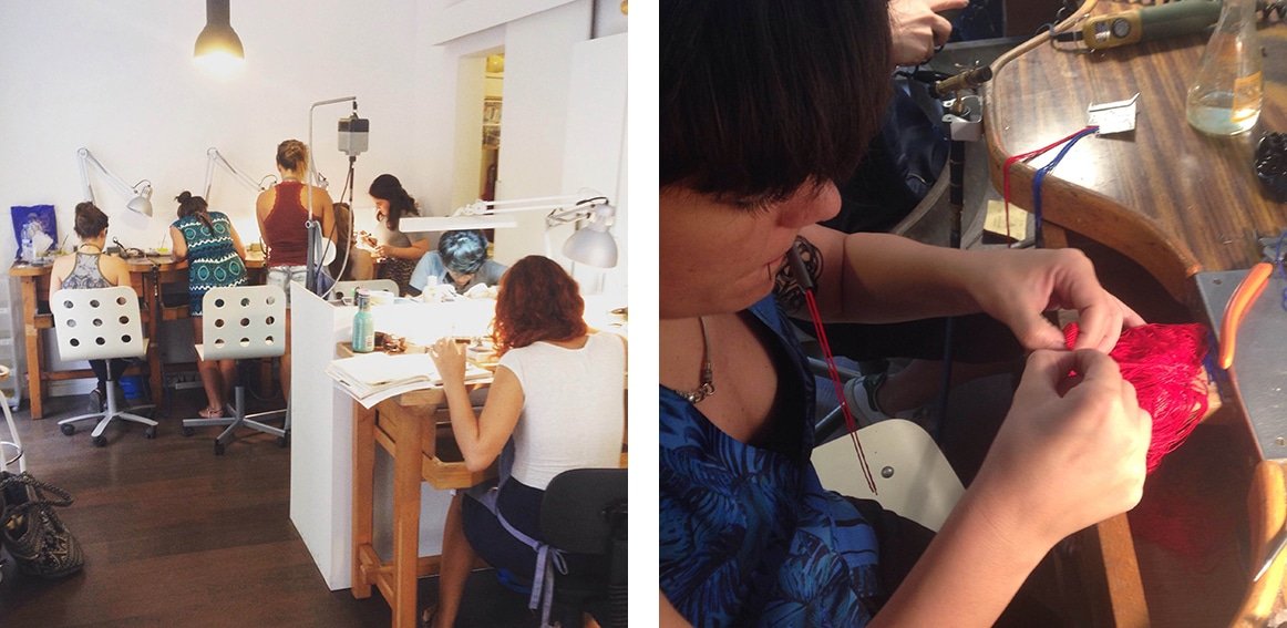 El curso, entre otras asignaturas también importantes, comprendía muchas horas de taller en las cuales trabajé codo a codo con las alumnas. Como me decía, con razón, mi profesor en la escuela de joyería donde estudié: nunca acabamos de aprender.
