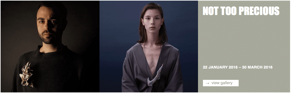 La verdad es que me ha surgido la idea de este post también porqué tengo pendiente otro viaje y, como siempre voy buscando información de los sitios donde voy, vais a descubrir cuál será mi próximo destino! A la National Craft Gallery de Kilkenny, Irlanda, hasta el 30 de marzo 2016 se puede visitar Not too precious una recopilación del trabajo de 25 joyeros internacionales sobre el uso de materiales diferentes basándose en su potencial y no en su valor intrínseco. Lo que empezó a promulgar, de cierto modo, Lalique a principios de 1900 y un hecho que se detectó como un antes y después en el mundo de la joyería a partir de los años ’60. Tengo mucha gana de ver esta expo!