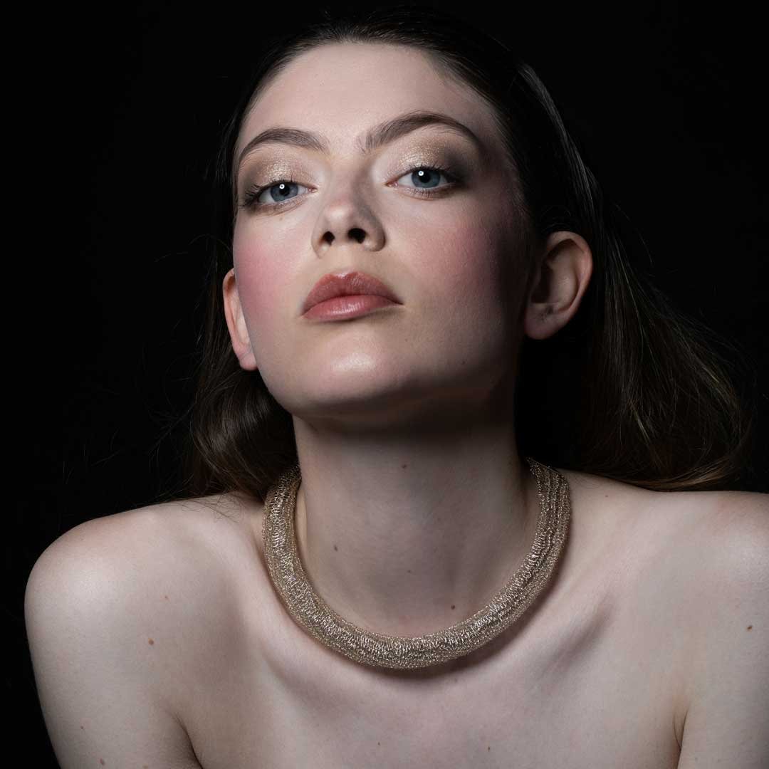 El collar pieza única KNITTED es una mezcla de ligereza, tamaño, espectacularidad y el binomio perfecto entre artesanía y tiempo. Está creado totalmente a mano por un total de casi 20 horas de trabajo. Más detalles en la descripción.