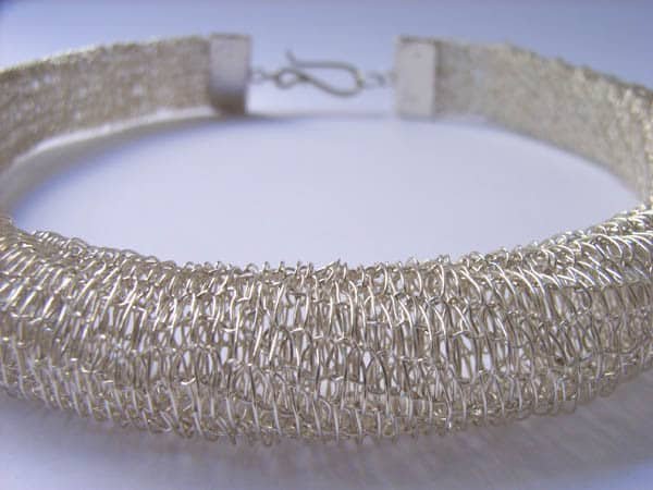 El collar pieza única KNITTED es único en su estilo. Por elección, el collar está hecho en plata de Ley 925 y no se le ha dado ningún tratamiento. Esto significa que la plata, de manera natural, irá envejeciendo y oscureciendo con el tiempo. Es posible, bajo pedido, darle un baño flash de plata para que quede brillante más tiempo. También hay la posibilidad pedir este collar en otros tamaños y/o medidas. Siempre por encargo se puede realizar con un todavía más espectacular resultado en otro metal como oro. Ponte en contacto conmigo aquí. Recuerda que puedes ver y probar el collar en la tienda/taller en Barcelona sin compromiso alguno. Hay otra versión del mismo collar: un tubular más pequeño, casi la mitad de grosor de este, 0,7 mm aproximadamente de grueso.