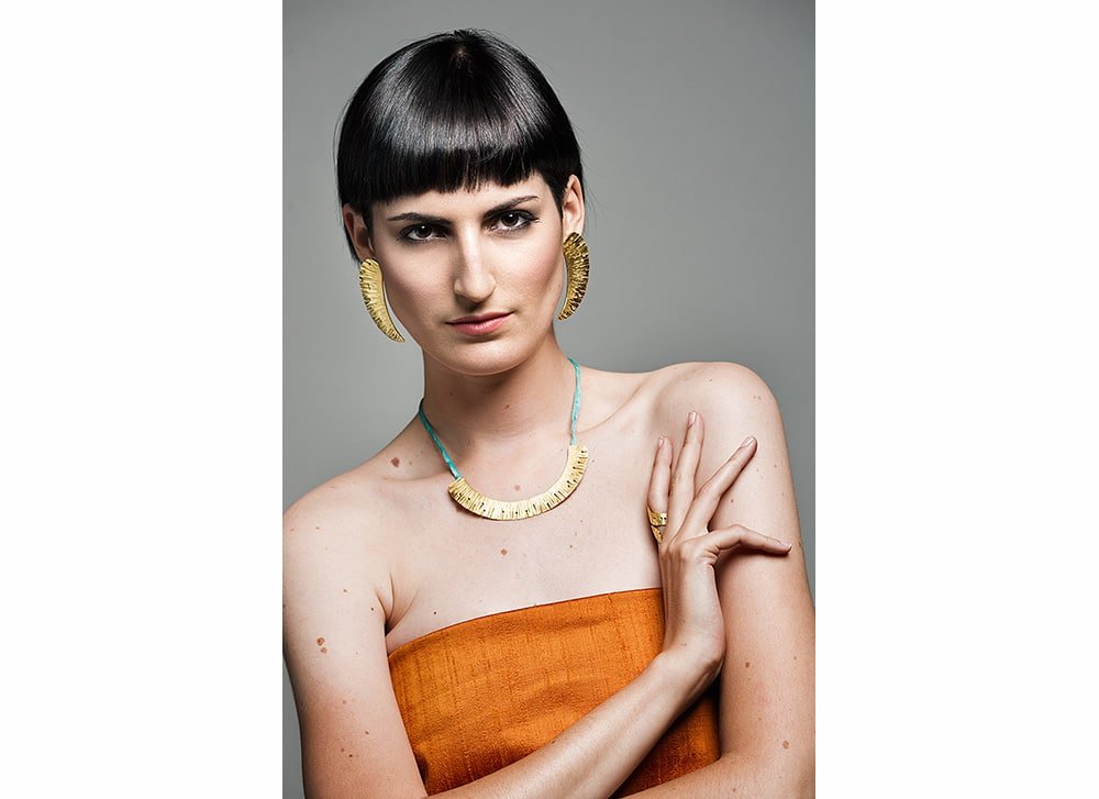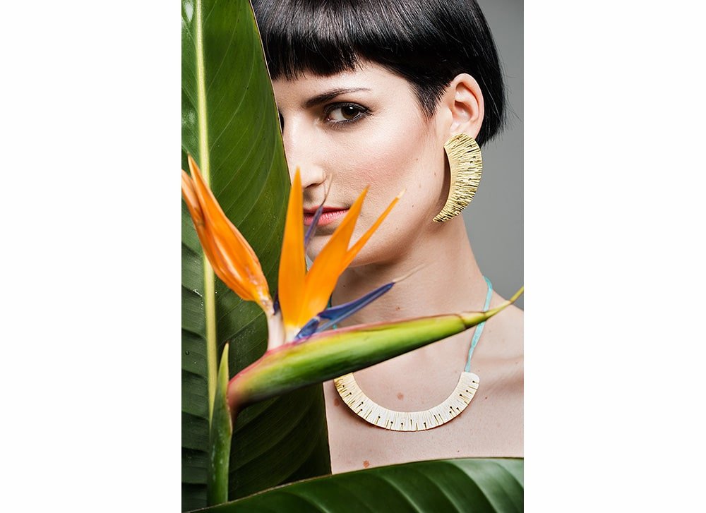 COLLAR MEDIA LUNA semicircular en plata 925, baño de oro 18kt y cordón de seda teñido a mano. Acabado a mano con diferentes texturas brillantes y mate. Combina fácilmente con cualquier look tanto de día como de noche. Por esto queda perfecto en cualquier ocasión y forma un conjunto ideal con cualquiera de las joyas de la colección Ninfa.